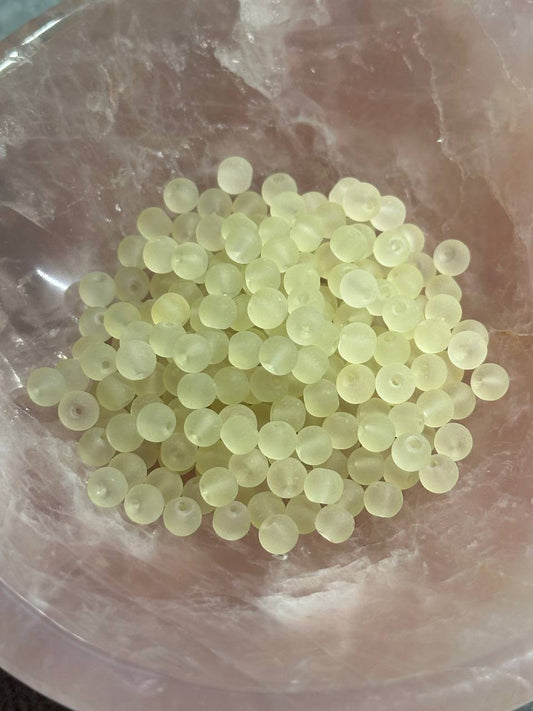 Frosted Light Yellow Round Druk Glass Beads – 4mm – 241 Beads