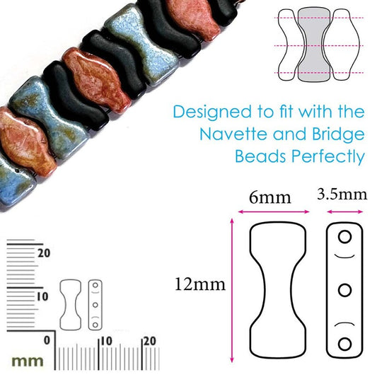 Czech Bridge 12 x 3 mm 23980-79031 Jet Suede Blue Glass Beads – 20 Beads