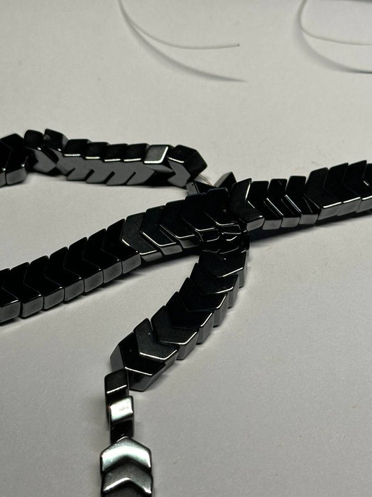 Hemalyke (or Hematite) Chevron Beads 8x7mm – 10" Strand