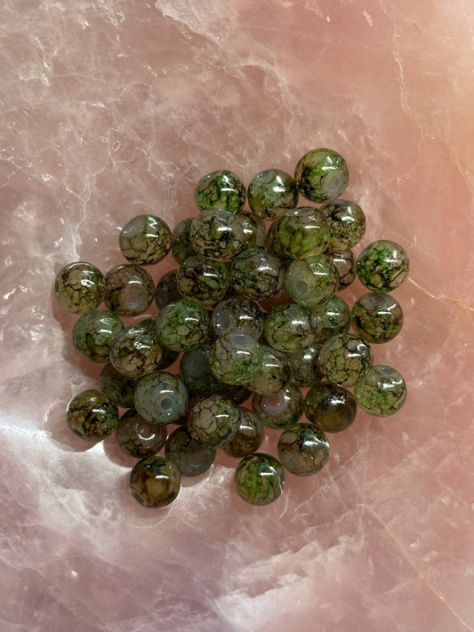 Green White Marble Round Druk Glass Beads 6mm – 51 Beads
