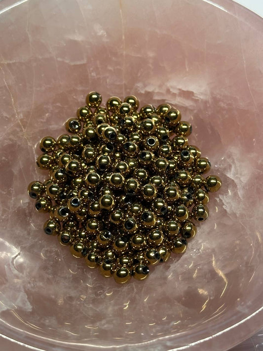 Hematite Gold Round Druk Glass Beads 4mm – 184 Beads