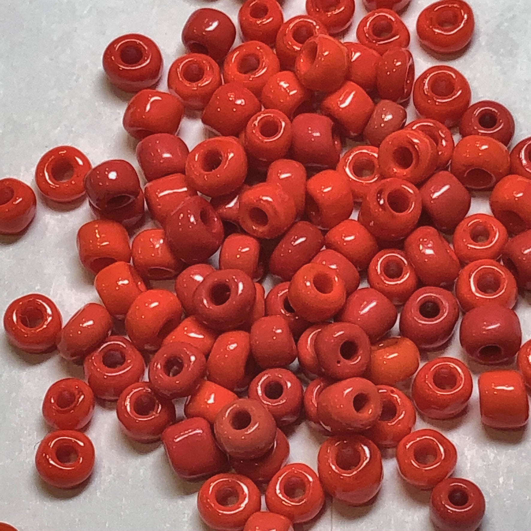 6/0 odstínů neprůhledných zářivě červených perliček, 4,5 nebo 5 g