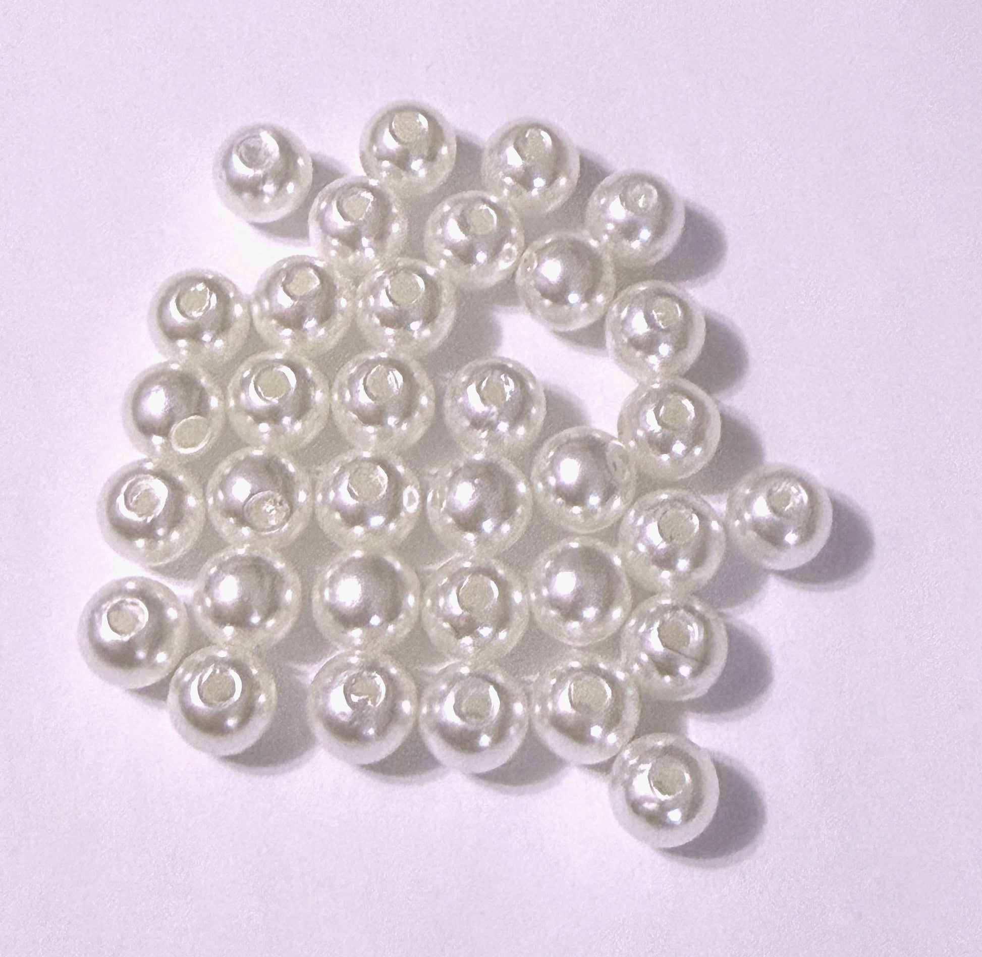 8 mm White Imitation Pearl Large Hole Round Acrylic Beads - Craft Grade Only - 34 Beads