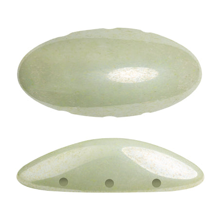 "New Athos®" par Puca® 03000-14457 Neprůhledný světle zelený keramický vzhled podlouhlý plochý zadní 3-dírkový český korálek, 10 x 20 mm - 1 korálek