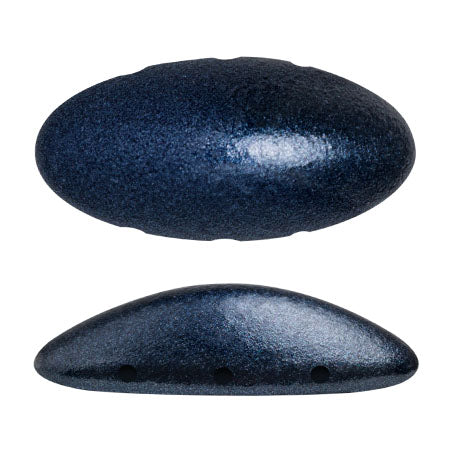 "New Athos®" par Puca® 23980-79032 Kovový matný tmavě modrý podlouhlý plochý zadní 3-dírkový český korálek, 10 x 20 mm - 1 korálek
