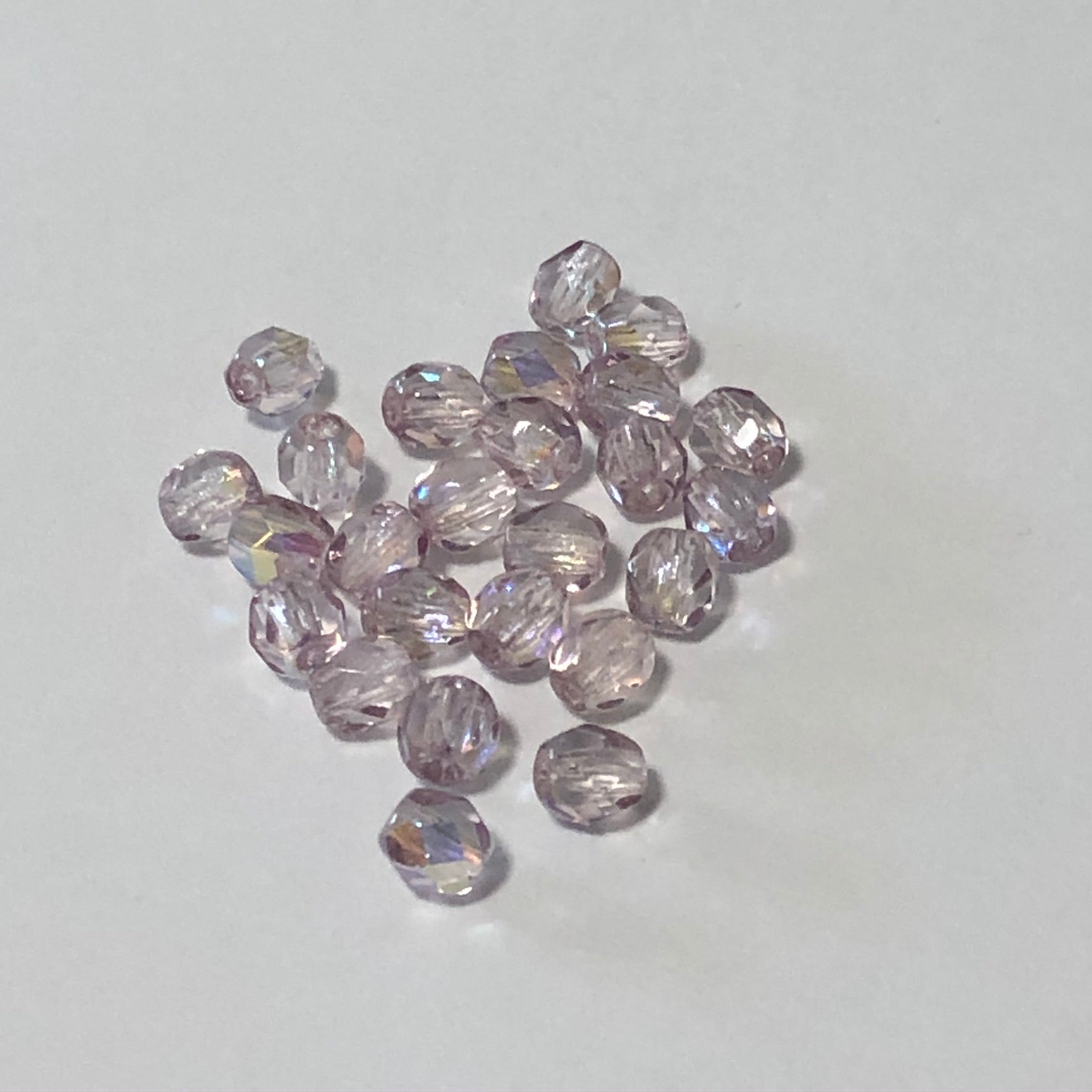 České ohnivě leštěné velmi lehké ametystové AB kulaté skleněné korálky s fazetou, 4 mm - 25 korálků