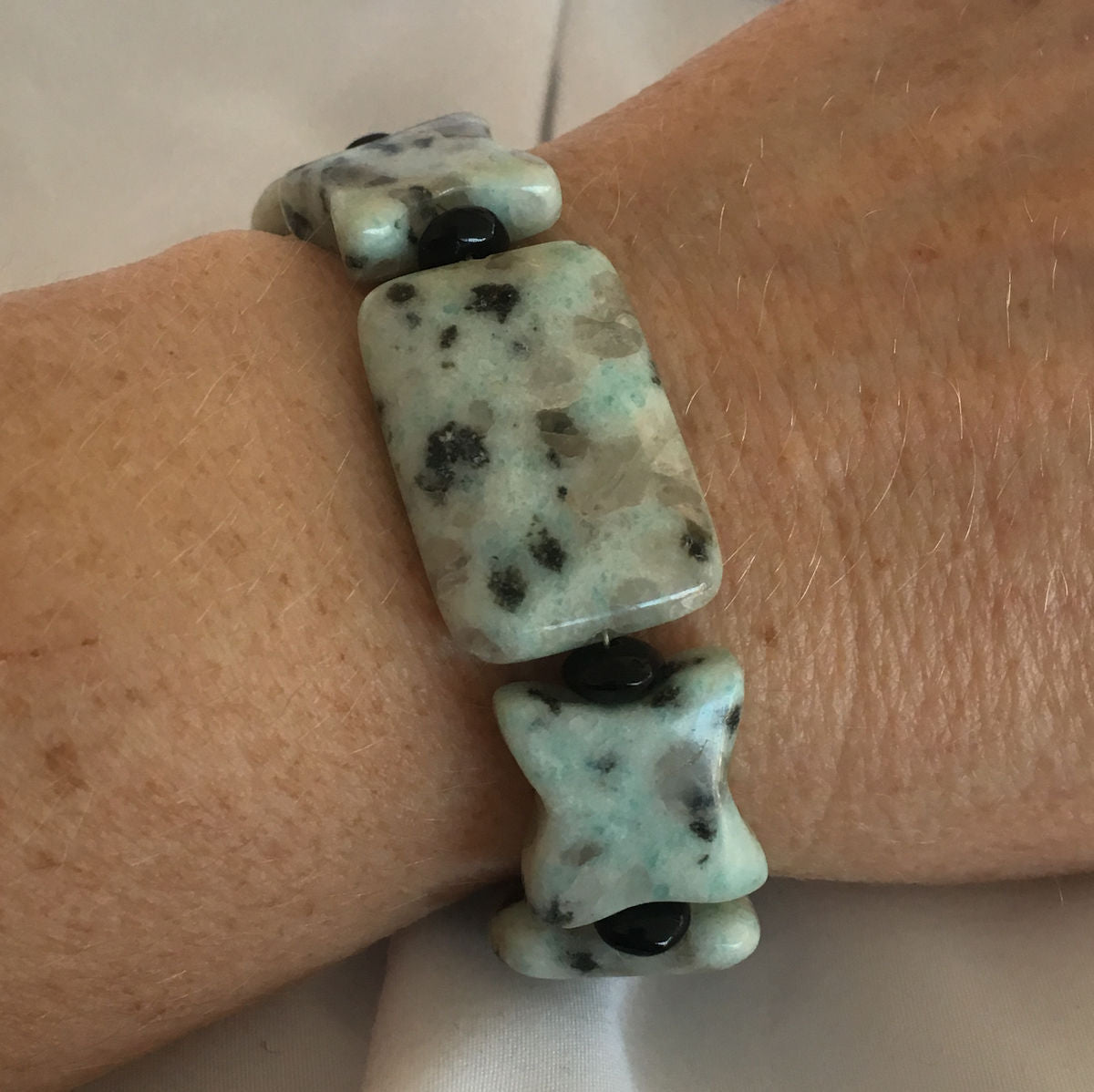 Sada kiwi jaspisového náramku a visacích náušnic (7,25 a 1,5 palce)