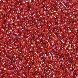 Miyuki Delica DB295 11/0 červené lemované transparentní červené AB válečkové/tube korálky, 5 nebo 10 g