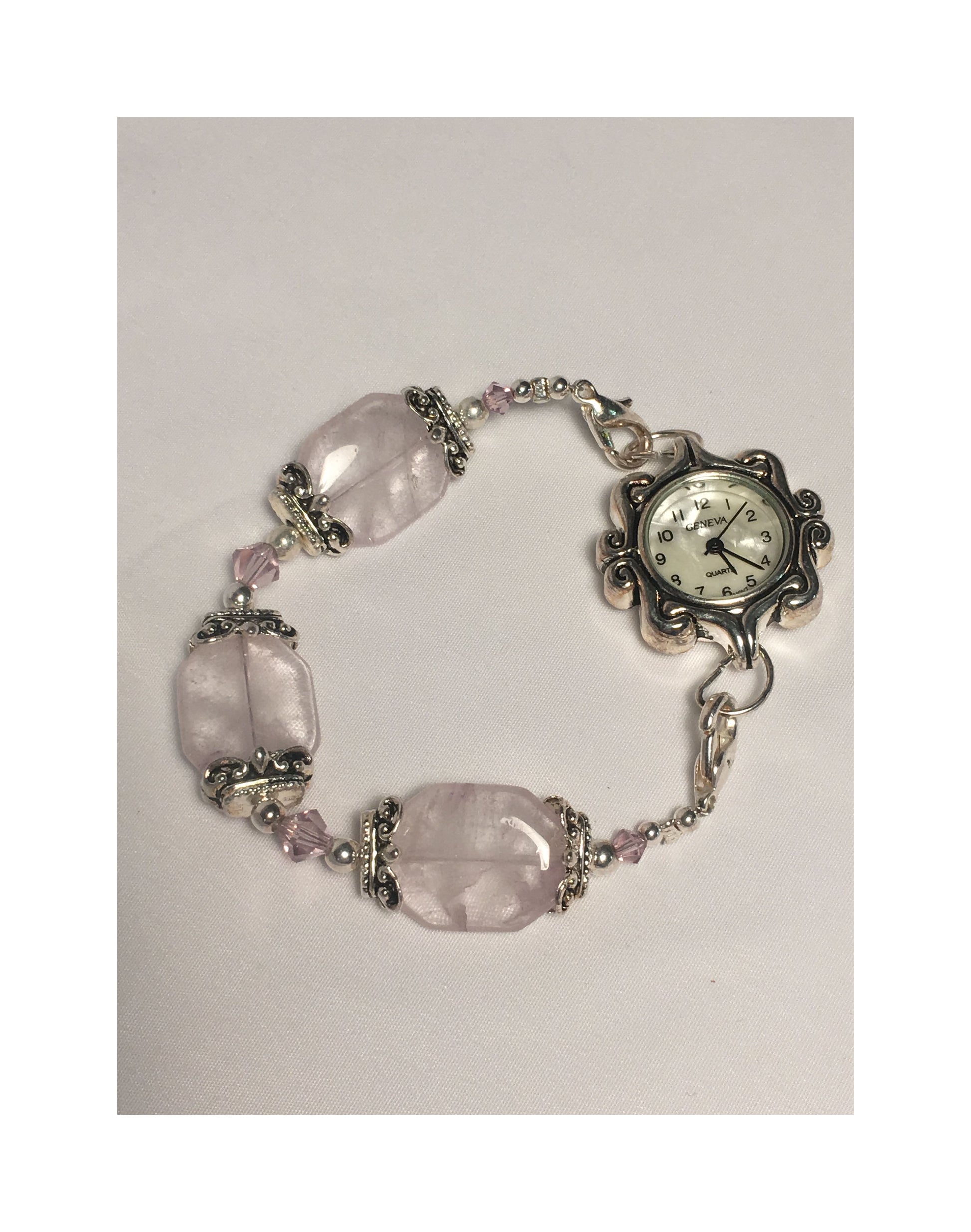 Hodinky Swarovski postříbřené, růžové krystaly Swarovski a růžové křemenné korálky, velikost 6