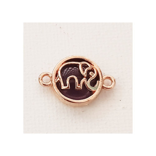Transparent Purple Glass Gold Metal Connector Focal Bead with Elephant, 20 x 13 x 5 mm