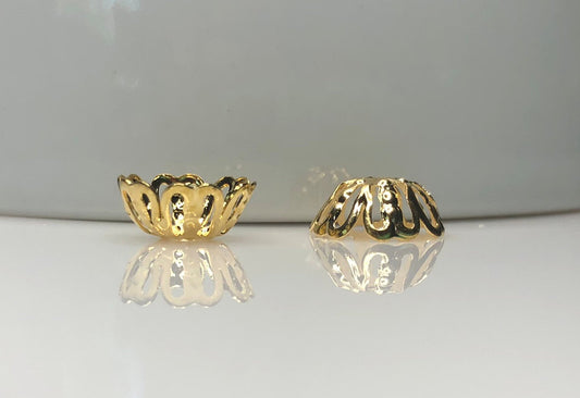 Capuchons de perles en filigrane en laiton plaqué or, 12 x 5 mm - 2 capuchons