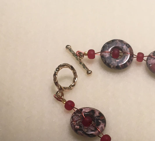 Bracelet en pierre semi-précieuse en jaspe peau de léopard peint