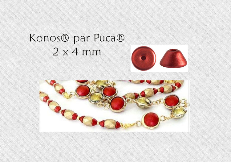 Konos® par Puca® 98419-28701 Frost Cherry AB Perles de verre tchèque à cône émoussé de 2 x 4 mm - 50 perles
