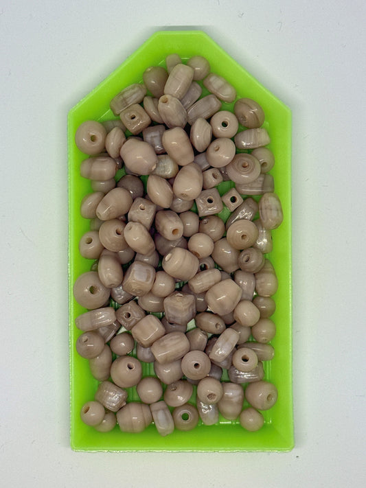 Beige / Tan Lampwork Glass Beads, Multiple Shapes 3.6-5 x 5-8.3 mm - 124 Beads