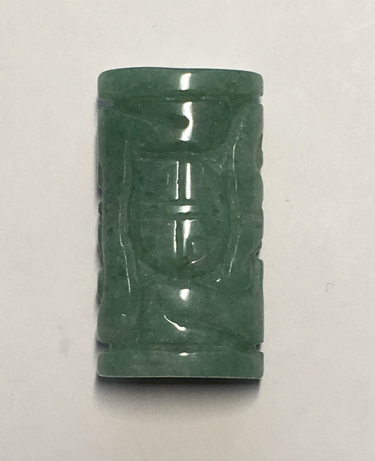 Pendentif cylindre ovale en pierre semi-précieuse sculptée en jade, 37 mm