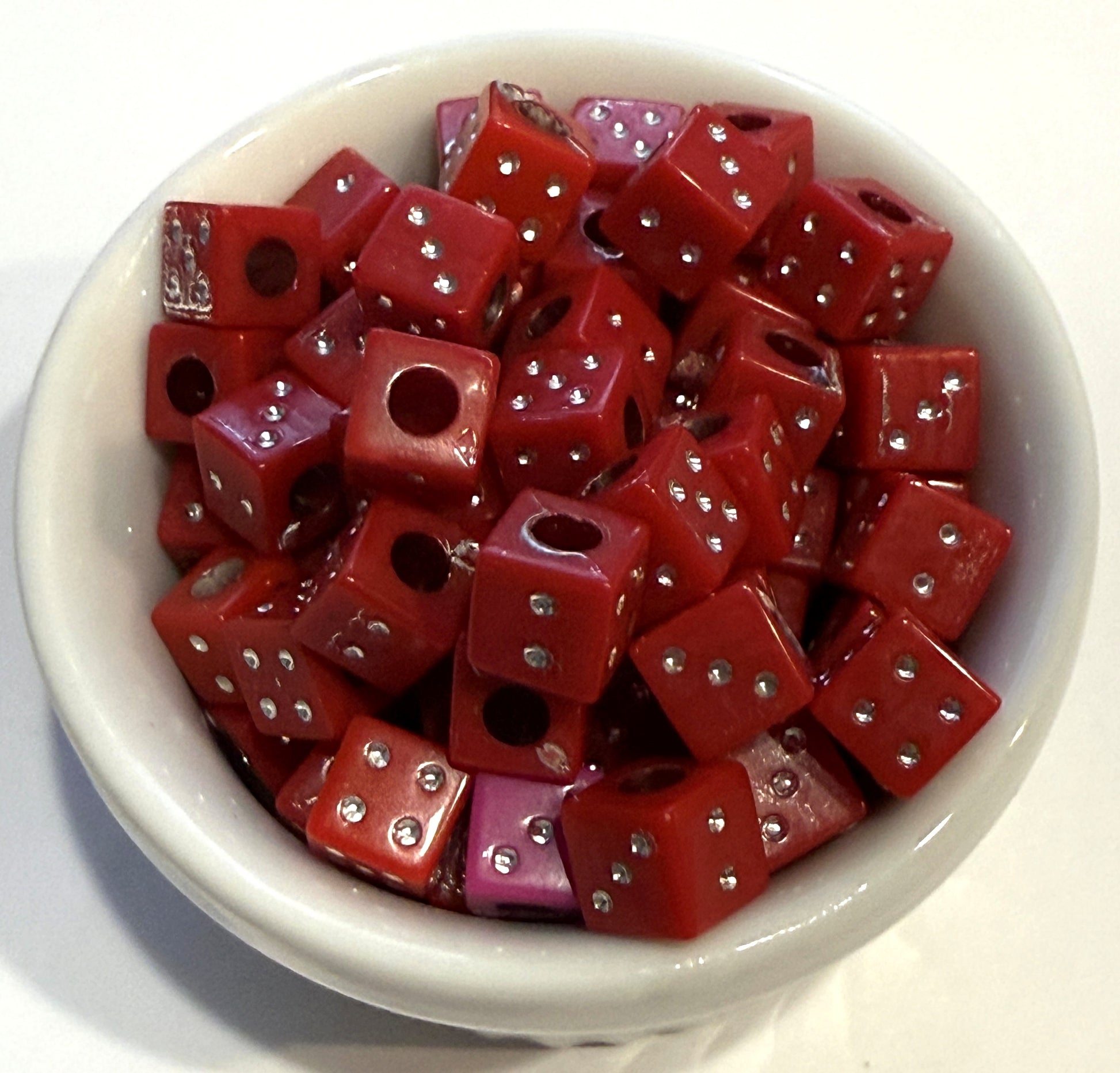 6 mm Opaque Dice Cube / Square Large Hole Acrylic Beads for Kids / Crafts - 25 Beads - Purple, Blue, Orange, Pink, Dark Blue, Yellow, Red or Green