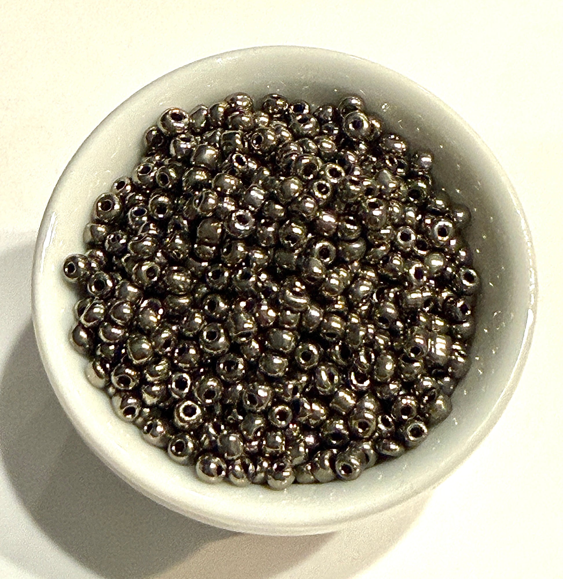 8/0 Metallic Nickel Gray Glass Seed Beads - 5 or 10 gm