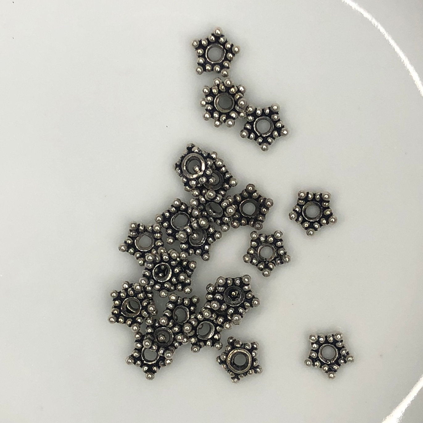 Capuchons de perles étoiles plaqués argent antique, 5 mm - 26 capuchons