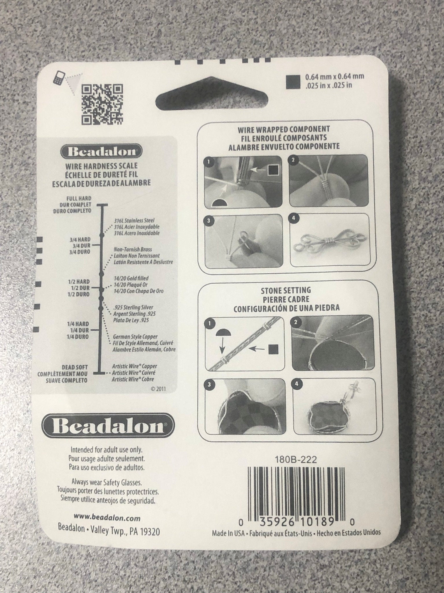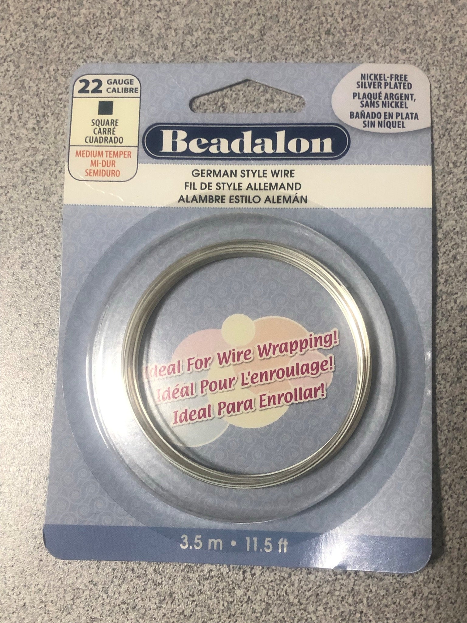 Beadalon Fil carré plaqué argent sans nickel, calibre 22, trempe moyenne, 3,5 m/ 11,5 pi 180B-222