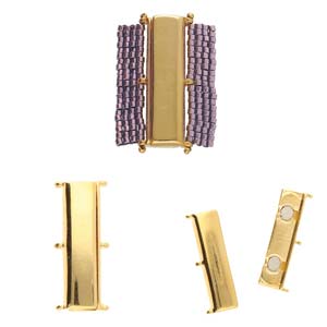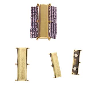 Fermoir magnétique Cymbal™ Axos III 11/0 Delica (DB), 30,6 x 10,6 mm, plaqué or 24 carats, plaqué argent antique ou plaqué laiton antique - 1 fermoir