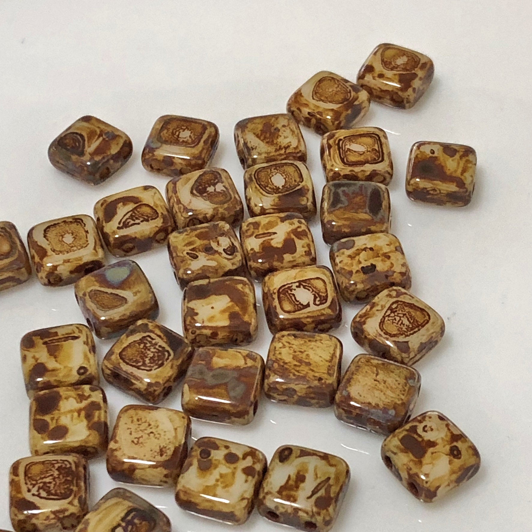 CzechMates T83529 Perles de carreaux de verre Picasso ivoire opaque, 6 mm, 2 trous - 25 perles