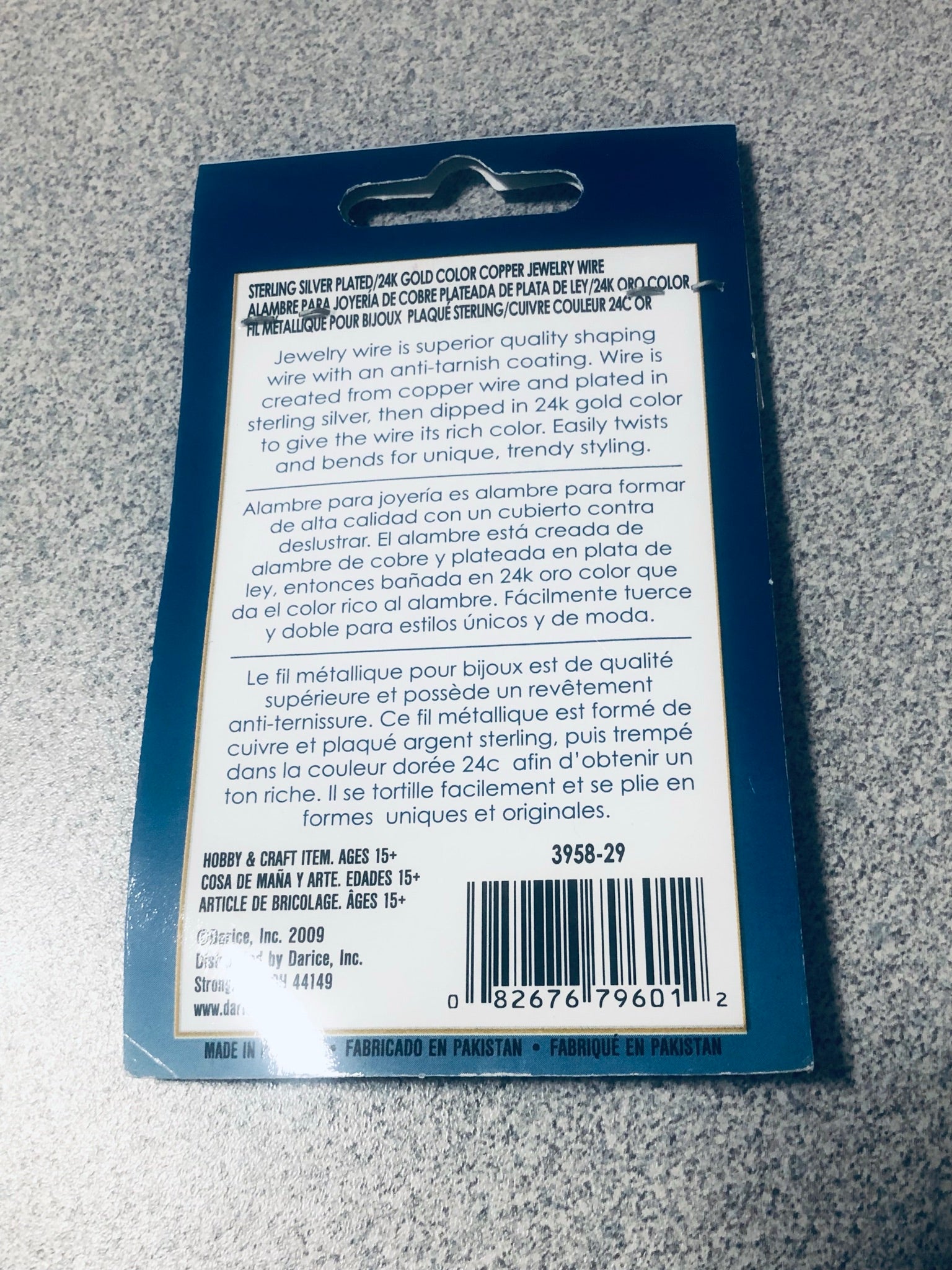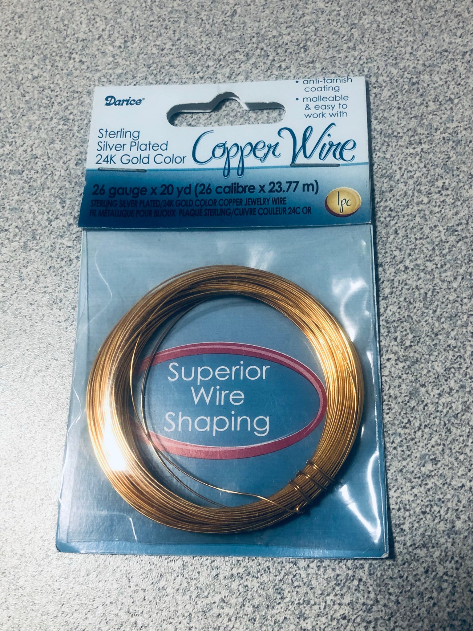 Darice 3958-29 « Fil de cuivre » rond en argent sterling plaqué or 24 carats de calibre 26, revêtement anti-ternissement, 20 m