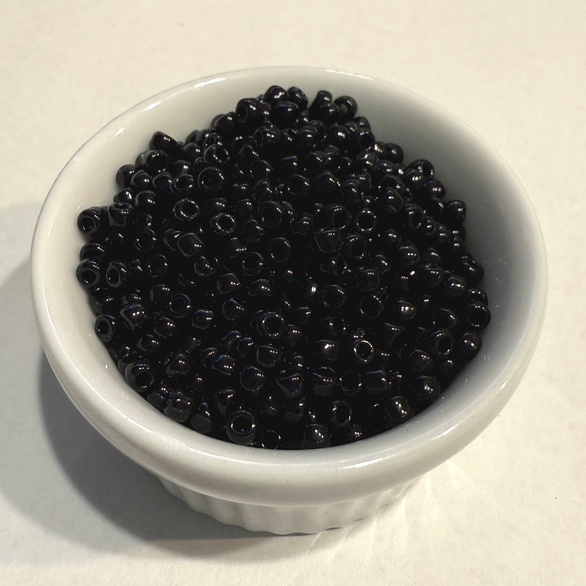 The following measurements and quantity are approximations: Beads measure 3 mm with a 1 mm hole. 39 beads per gram.