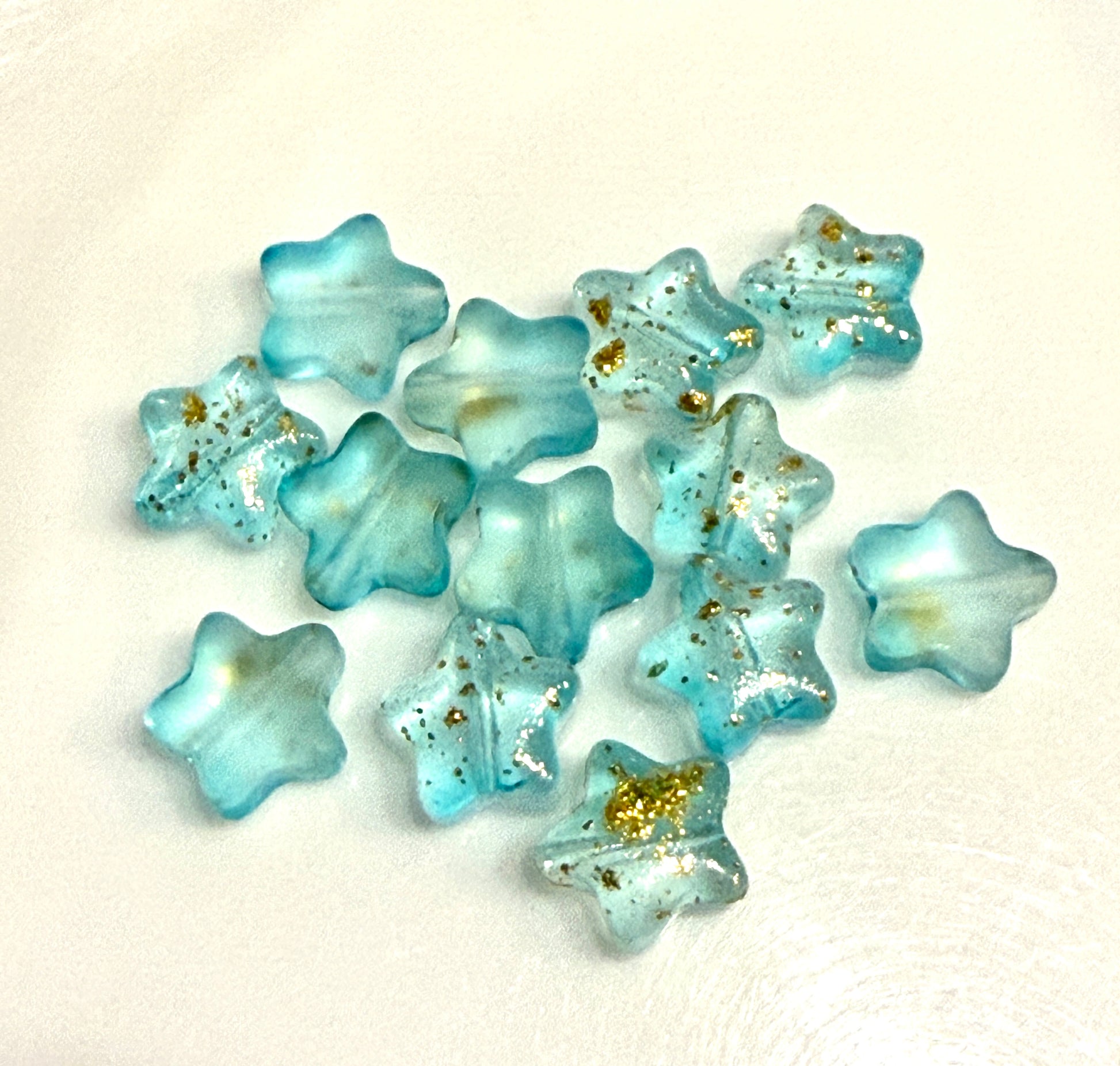 Glitter Coated Frosted Transparent Blue Glass Star Beads, 8 x 4 mm - 13 Beads