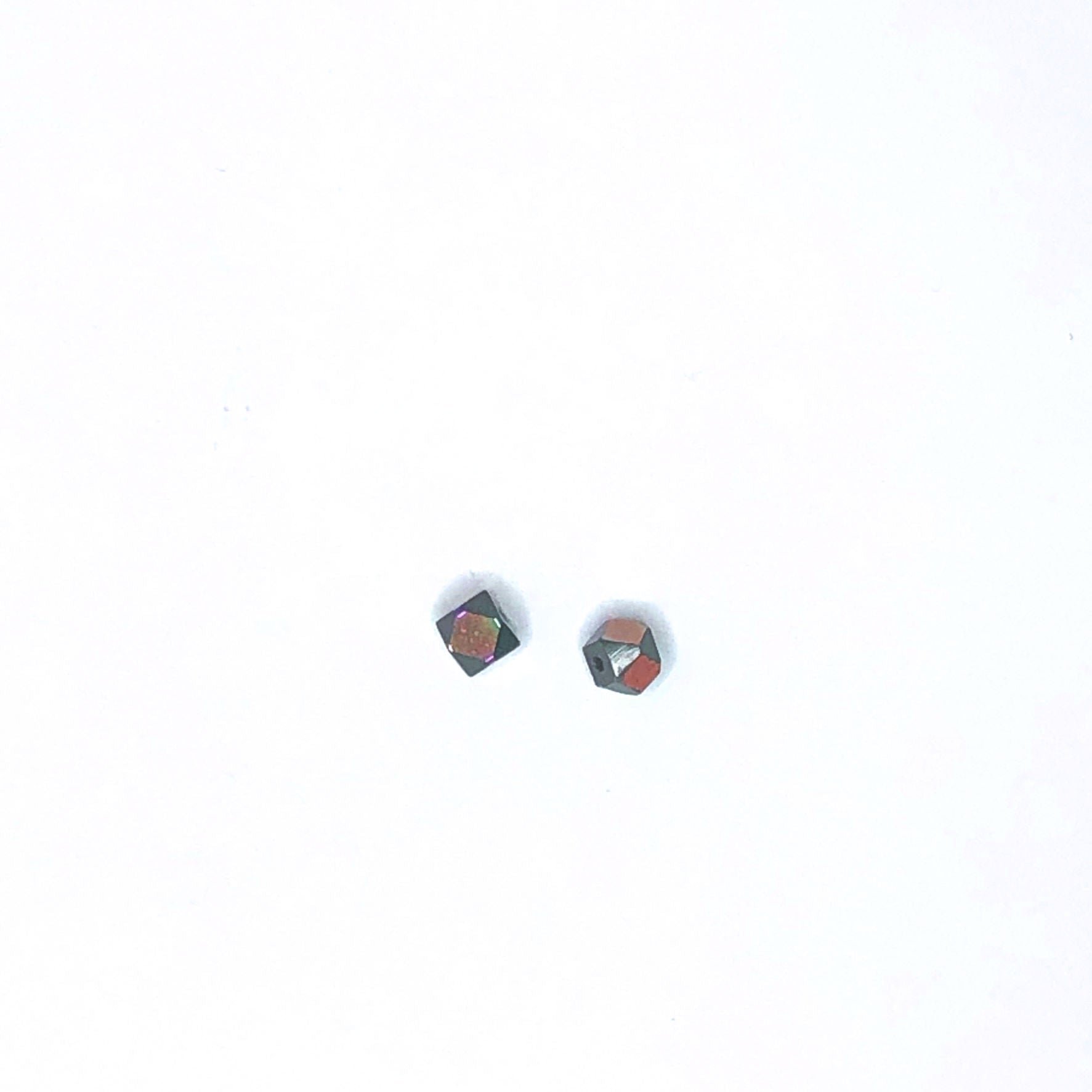 Perles de verre cube sans coin AB noir jais, 4 mm - 2 perles