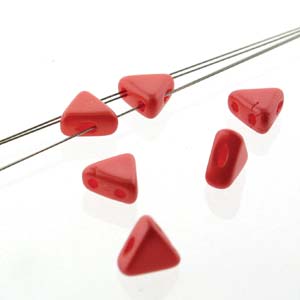 Les perles sont un triangle plat avec deux trous de 0,8 mm et mesurent 6 mm. Il y a environ 75 perles dans 10 grammes.