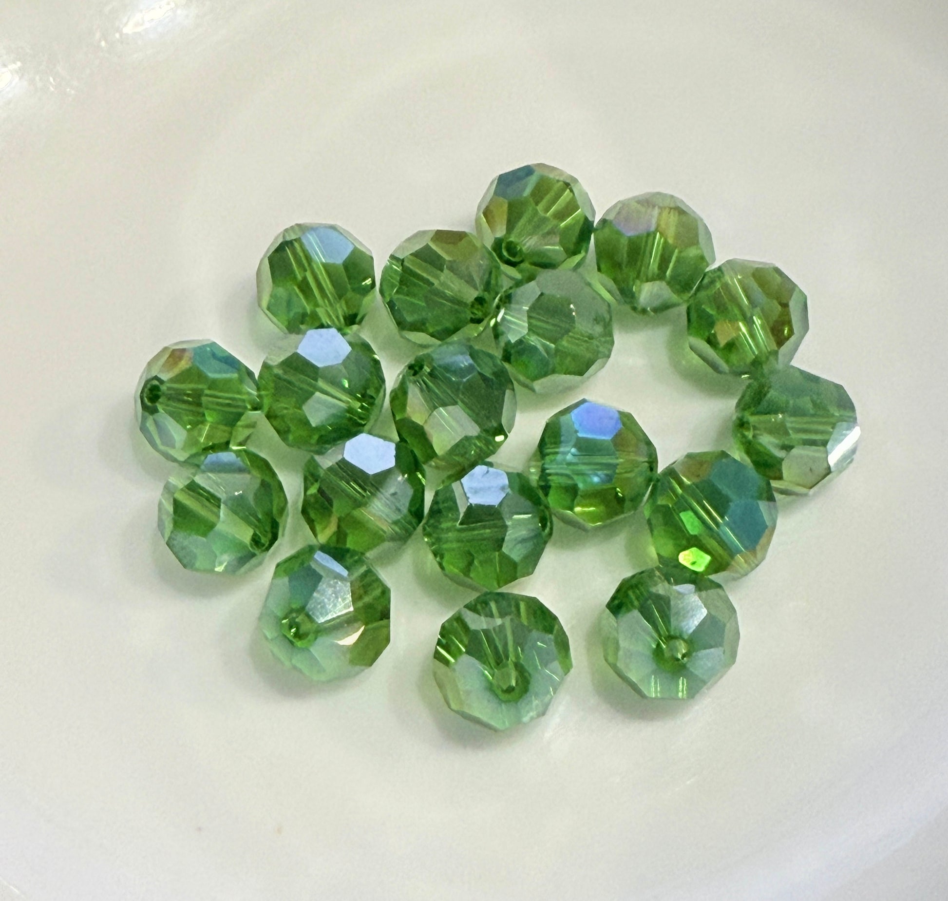 Transparent Green with Light AB Effect Faceted Round Glass Beads 10 mm - 18 Beads